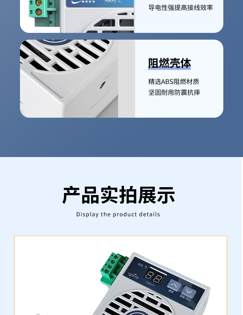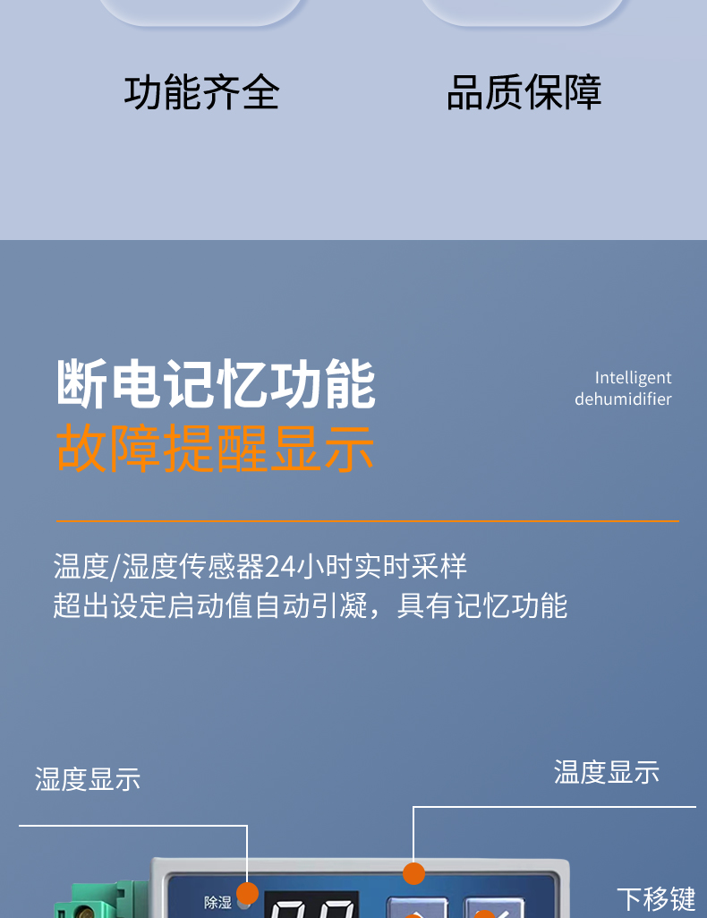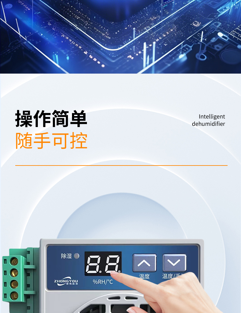 2.智能控制:内置高精度温湿度传感器,自动监测柜内环境。支持 阈值调节(如湿度>65%自动启动),节能省电。
