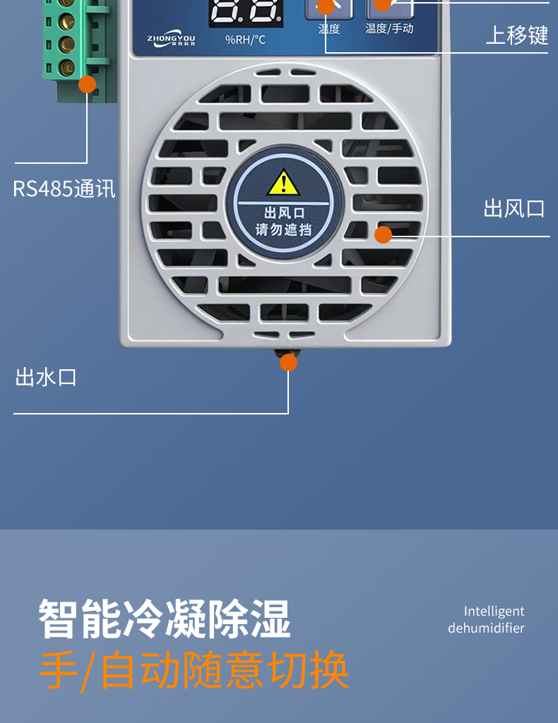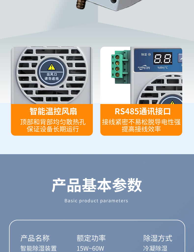 2.智能控制:内置高精度温湿度传感器,自动监测柜内环境。支持 阈值调节(如湿度>65%自动启动),节能省电。